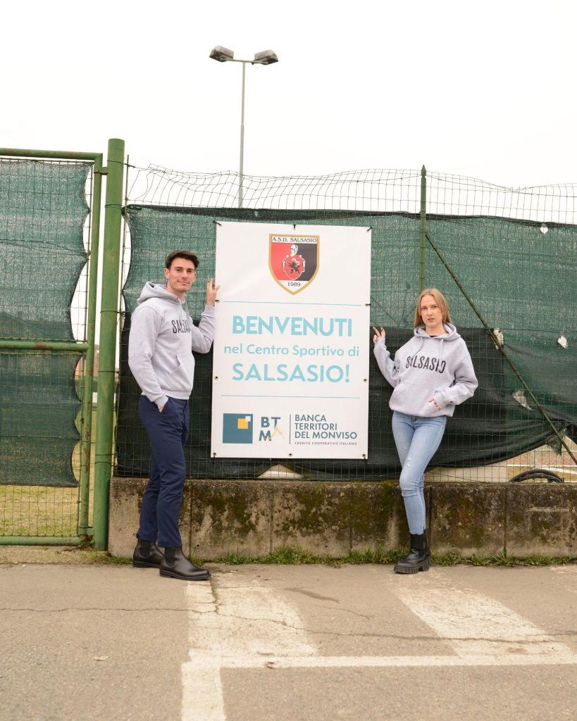 Ad accogliere tutti gli spettatori del centro sportivo di Salsasio ora ci sono dei banner che raffigurano anche i loghi della Banca Territori del Monviso e del Salsasio, ma la grande novità sono le nuove ed esclusive felpe ufficiali Salsasio – BTM, presentate nella Sede Centrale della BTM, situata proprio a Salsasio, a pochi passi dal centro sportivo Giorgio Demichelis!