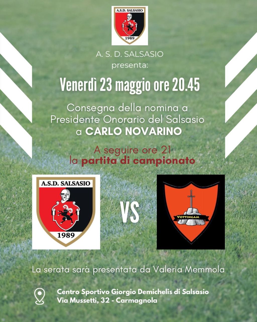 In occasione dell’ultima partita di campionato grande festa a Salsasio Grande festa a Salsasio venerdì 23 maggio in occasione dell’ultima partita di campionato dei rossoneri per questa stagione sportiva. Nel centro sportivo “Giorgio Demichelis” di Salsasio in via Mussetti 32 a Carmagnola il 23 maggio alle 20,45 si svolgerà la consegna ufficiale della nomina a…